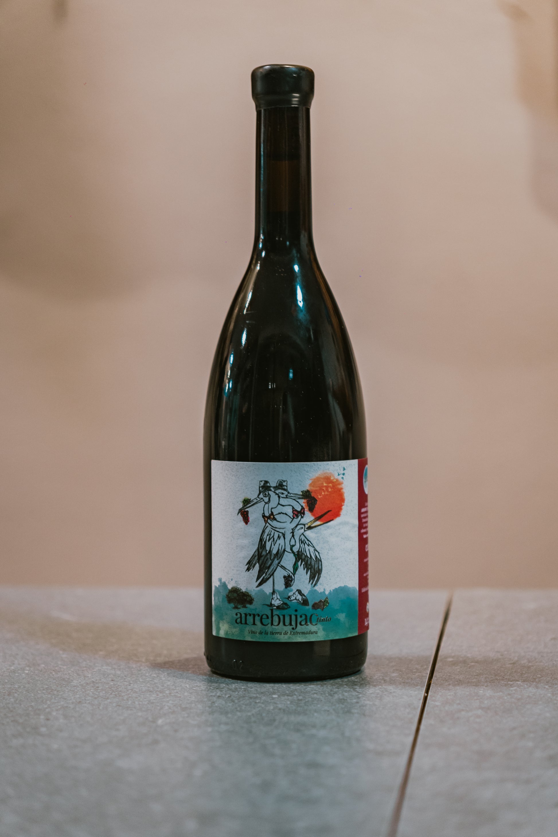 Este vino se ha elaborado arrebujando (mezclando) tres uvas extremeñas: eva/beba (60%).