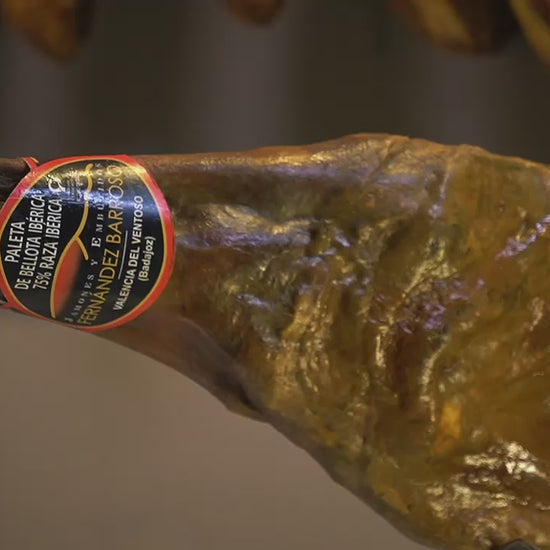 Esta paleta es una joya de la charcutería ibérica. Elaborada con cerdos de raza 75% ibérica, criados en libertad y alimentados exclusivamente con bellotas durante la montanera, esta paleta destaca por su sabor profundo y su textura delicada. Su curación artesanal, que puede durar más de 24 meses, otorga una suavidad y jugosidad excepcionales, con un equilibrio perfecto entre lo magro y lo graso. Sin aditivos ni conservantes, esta paleta ofrece una experiencia auténtica de la tradición ibérica.